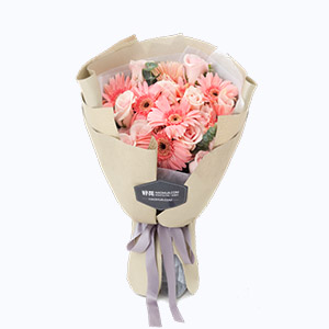 Cherish珍愛鮮花系列9枝粉玫瑰+梔子葉